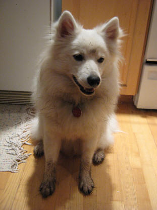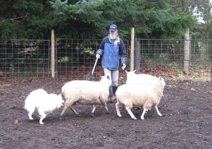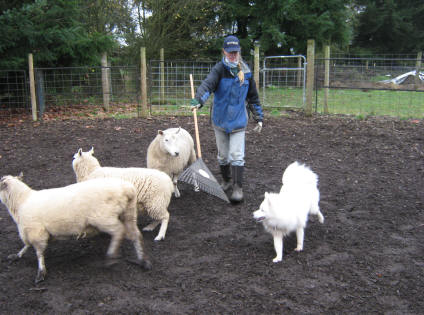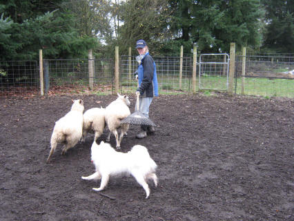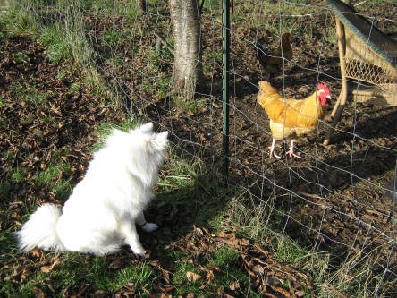 Patrone and Scoops even found their way up onto the front porch, where Scoops helped himself to teh rose bushes. Luckily they are done for the season anyway! As you can see it was kind of a cold, wet and misty day. When it was heading for dusk I took them some grain and lured them back into the corral. But they had a nice afternoon out.