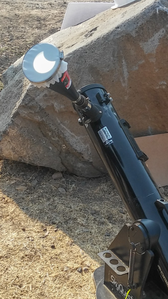 We tried out a box with a pinhole projection going on to see the eclipse as it progressed towards full, and checked out the telescopes, including Brian’s fabulous funnel-projection setup on his 8″ dob.