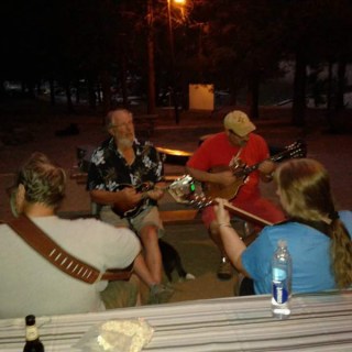 When we got there we immediately found friends, and discovered the Trout Lake contingent were all parked together at the other end of the park. I brought my fiddle and got some tips from Jim on stuff to work on so I could play along with everyone next time, and enjoyed sitting in and listening as everyone played under the streetlight behind Janet and Gary’s trailer, since campfires were not allowed.