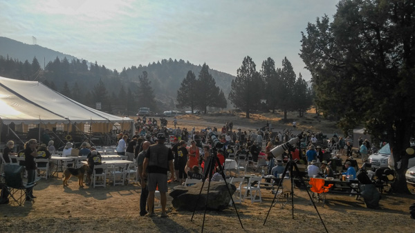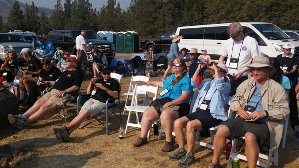 Monday morning came, and it was time for the big event. The eclipse was going to happen at 10:21am, so we all gathered at the big tent for viewing, and then afterwards we would have brunch and have an astronaut come talk. It was a little smoky from nearby brush fires, but it looked like it was still going to be ok.