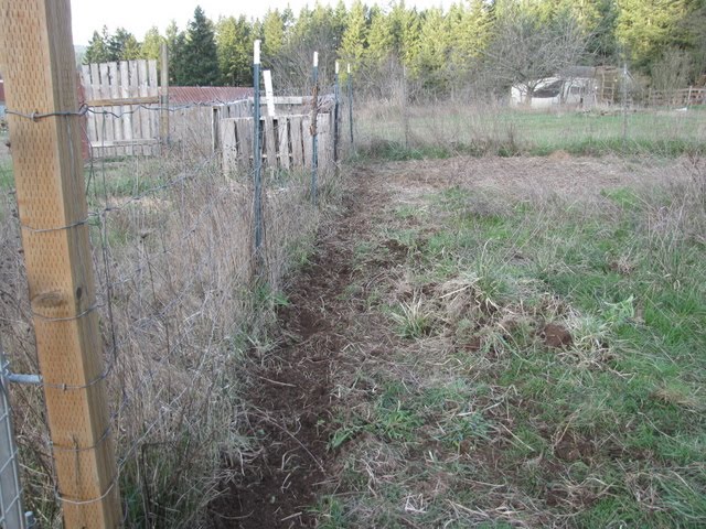 It doesn’t look like much to write home about, but the turned over area along the fence is my row of peas. I planted them there so they could climb up the fence without having to add extra support for them.