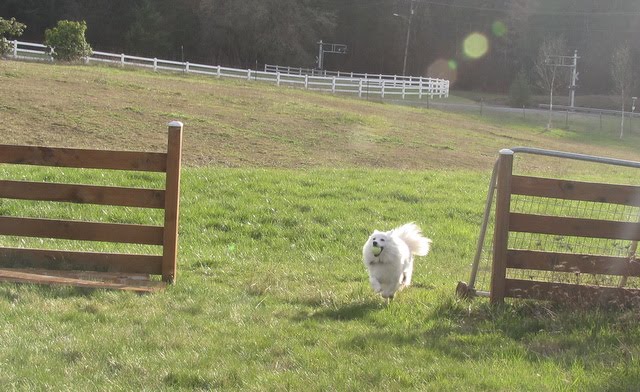 I opened a section of fence from the main yard into the pasture for doggie access. It’s funny how this makes the front yard feel completely different! Look how happy Barclay is to fetch a ball out of the pasture 🙂 I’m going to put a metal gate there so I can still have control over their access. Otherwise they can be real pests about going out in the pasture and barking at the neighbors.