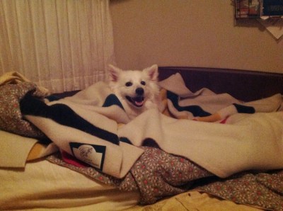Both dogs like laying in the ‘doghouse’ under the bed. Navi decided it was hers and growled furiously if Barclay tried to invade it. Which he occasionally did, just to annoy her.