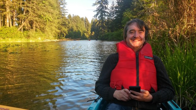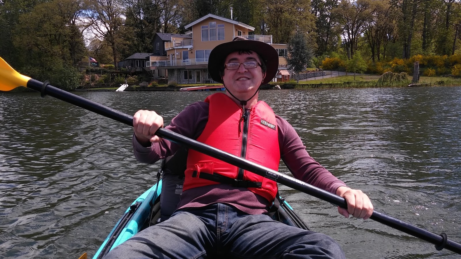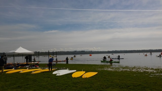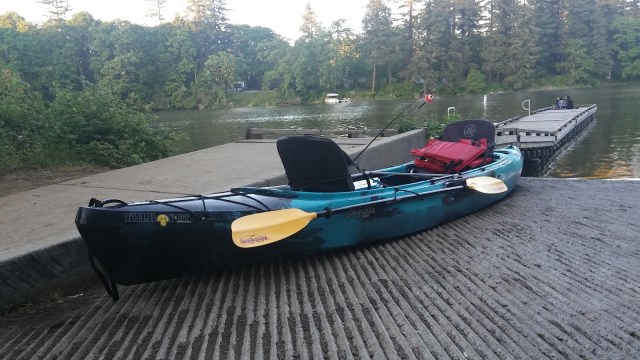 Meanwhile, we’ve had a rubber raft for years which we have taken out to paddle around many times. It’s fun, but it’s not comfortable to use. It paddles hard and slow, but it has been fine. Still, I’ve had my eye on getting a nice kayak for a long time. Particularly a [particular brand that will remain unnamed] fishing kayak. They are supposed to be wide and stable, and really well designed. I’ve been keeping my eye on them for many years. So I was excited to actually find out the local kayak shop was having their free paddle weekend at the lake (I usually find out about it after it’s over!) On that Saturday morning I headed on down to Vancouver Lake bright and early to check it out.