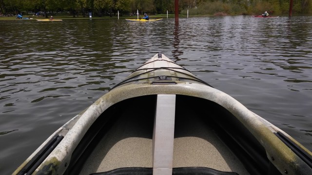 It was ok, I liked it fine, but I didn’t feel super stable,. The guy manning the Eddyline booth was really helpful and directed me to another Eddyline sit-on-top to try out and I took it for a spin. It was better. I paddled it around a bit and considered if we were to get a kayak, would it be better to get a tandem (big and heavy), or two singles (lighter, but more expensive overall). Was it better to get a sit-on-top, or a sit-inside?