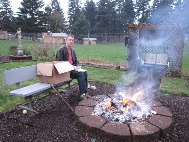 Unfortunately Dave had spent the day before working out in the yard getting ready for the new fence, and tweaked his back, so loading them up in the van was about all he had left. We left them in the van for a few days, taking them on a tour around town as I did my errands. This weekend we finally got up the umph to go for it, and haul out the old couches. Unfortunately they had to go to the dump because nobody wants a used couch – at least not if it has any cat scratches on the ends. Seems like such a waste! But none of the thrift stores we tried would take them, so to the dump they went. In went the new couches. Then we headed off to the antique stores to look for some end tables and find something for the dogs to sit up on and look out the windows.