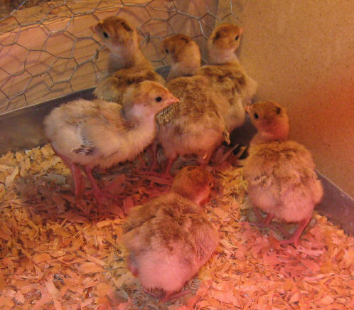 And this is the brooder box with a heat lamp I set up today for the turkeys! Yep, I said turkeys. This weekend hopefully we’ll be getting a few Bourbon Red Turkey babies. I talked to the breeder this morning and he said they were just starting to hatch today. I intend for these turkeys to be food – holiday turkeys. He said they should be close to 20lbs by Thanksgiving. But knowing us by the time the holidays roll around they’ll have turned into pets. Unlike my hen-raised chicks, the turkeys will be in a brooder box getting attention from me every day, which should help make them extra tame, and that’s important with a bird as big as a turkey! But that also will make them harder to eat when the time comes. These are the first animals on our ‘farm’ that are intended to be food, so we’ll see how that goes.