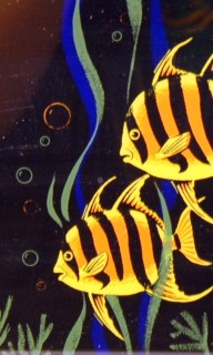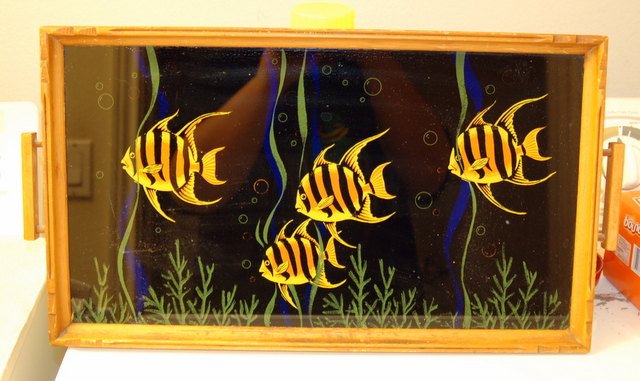 The bottom one is actually a glass tray with a neat printed fish scene on it. I love all this stuff, but I won’t have room for so much of it where we’re going, so I put them up on eBay.