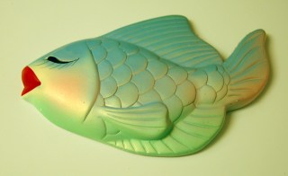 So I’m working on cleaning and de-cluttering the house. I started with the bathroom, because the walls were covered with my vintage ‘bathroom fish’ collection.