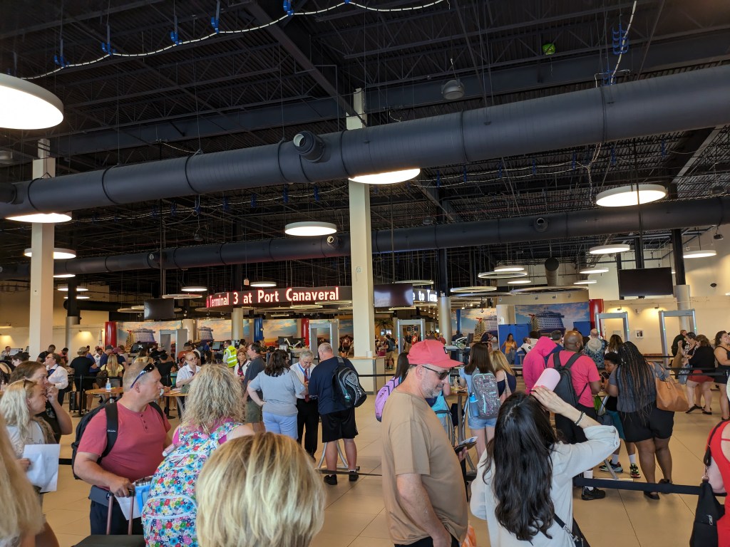 Saturday night was the concert. We drove by ahead of time to check it out and it looked super sketchy. Lots of homeless people around. The parking looked iffy – since we have the Flex with the giant kayak rack on top, it couldn’t go in a parking garage. Dave found street parking a few blocks away. He dropped us off since there was already a line forming, and Michele and I got a place in line while he parked the beast.