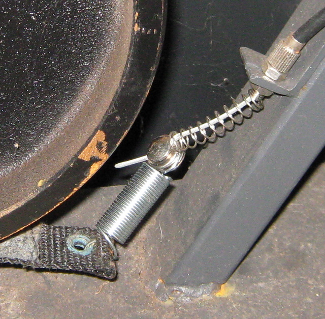 So I took the spring out and went out to the garage and started digging in my workbench. I quickly found a couple springs that might do the job. One felt about right, but was too long. So I snipped off what I needed and re-bent a loop into the end.