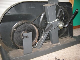 We just brought it in this afternoon, and the resistance knob didn’t seem to do much. So I looked up on the net for info about it, and saw several people complaining that it goes through resistance bands and they are expensive to replace. So I was thinking, great, that explains why it was free. So after Dave left for rehearsal I had nothing else to do this evening, so I pulled the cover off to have a look.